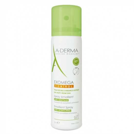 - Le Spray émollient EXOMEGA CONTROL est le premier spray émollient naturel. Enrichi en extraits de Plantules d?Avoine Rhealba et en Bio-Vect, deux principes actifs brevetés par A-Derma, ce soin procure un apaisement immédiat et aide à réduire les irritations cutanées sur tout le corps.