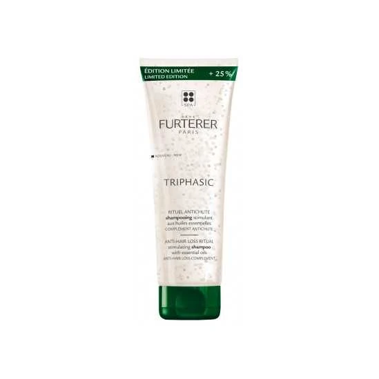 René Furterer Triphasic Rituel Antichute Shampoing Stimulant 250 ml 25% Offert est un shampoing stimulant aux huiles essentielles qui associe deux actifs antichute de haute efficacité.