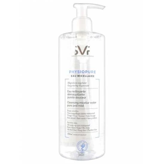 SVR Physiopure Eau Micellaire Eau Nettoyante Démaquillante Pureté Douceur 400 ml est une eau micellaire pour le visage, les yeux et les lèvres, qui est spécialement formulée pour le démaquillage des peaux sensibles.