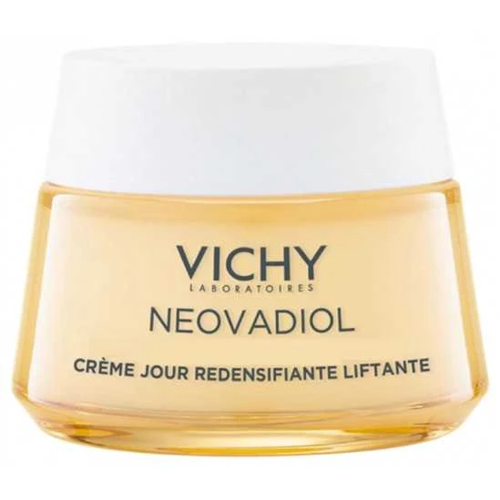 Vichy Neovadiol Pré-Ménopause Peau Sèche Crème Jour Redensifiante Liftante 50 ml est un soin conçu pour agir sur les impacts visibles de la péri-ménopause sur la peau, grâce à une action ciblée sur la perte de densité et de définition de l’ovale du visage. Cette crème est spécialement formulée pour les peaux sèches.
