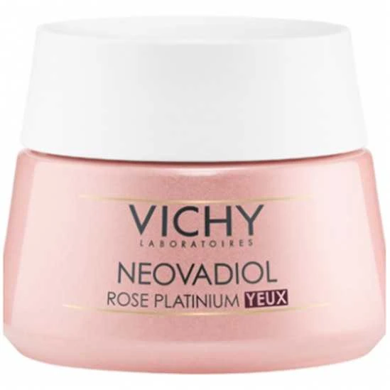 Neovadiol Rose Platinium Yeux est un soin rosé anti-poches et anti-rides pour les peaux matures et ternes. Cette crème pigmentée nourrissante et énergisante pour les yeux est conçue pour réduire les paupières gonflées et lisser visiblement les rides du contour des yeux et les cernes. Elle est formulée avec de la caféine décongestionante, du calcium fortifiant et de l’eau volcanique de Vichy. Les rides sont comme floutées, pour un contour des yeux rajeuni.